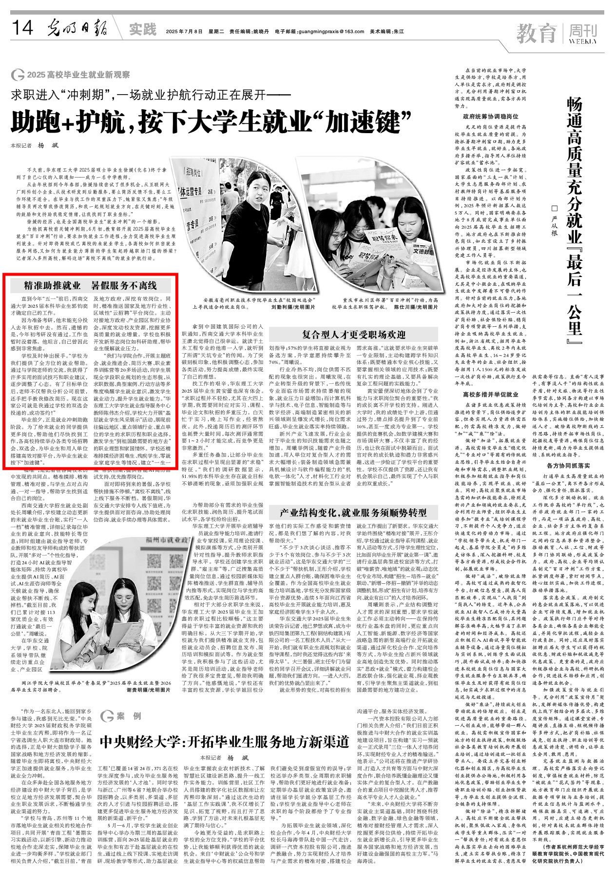 近日,《光明日报》采访报道了公司2025届本科毕业生郭钧奕同学的求职故事。他的经历是学院系统性、精准化就业帮扶工作成效的一个生动体现。